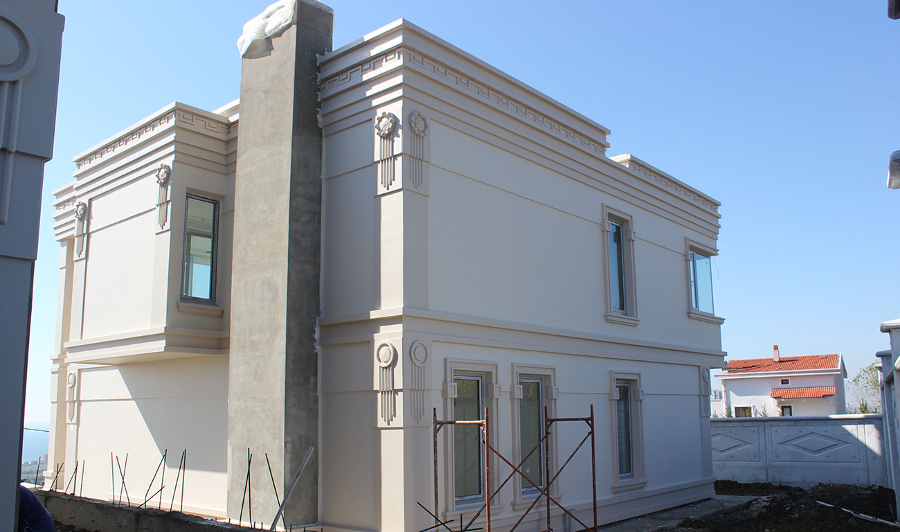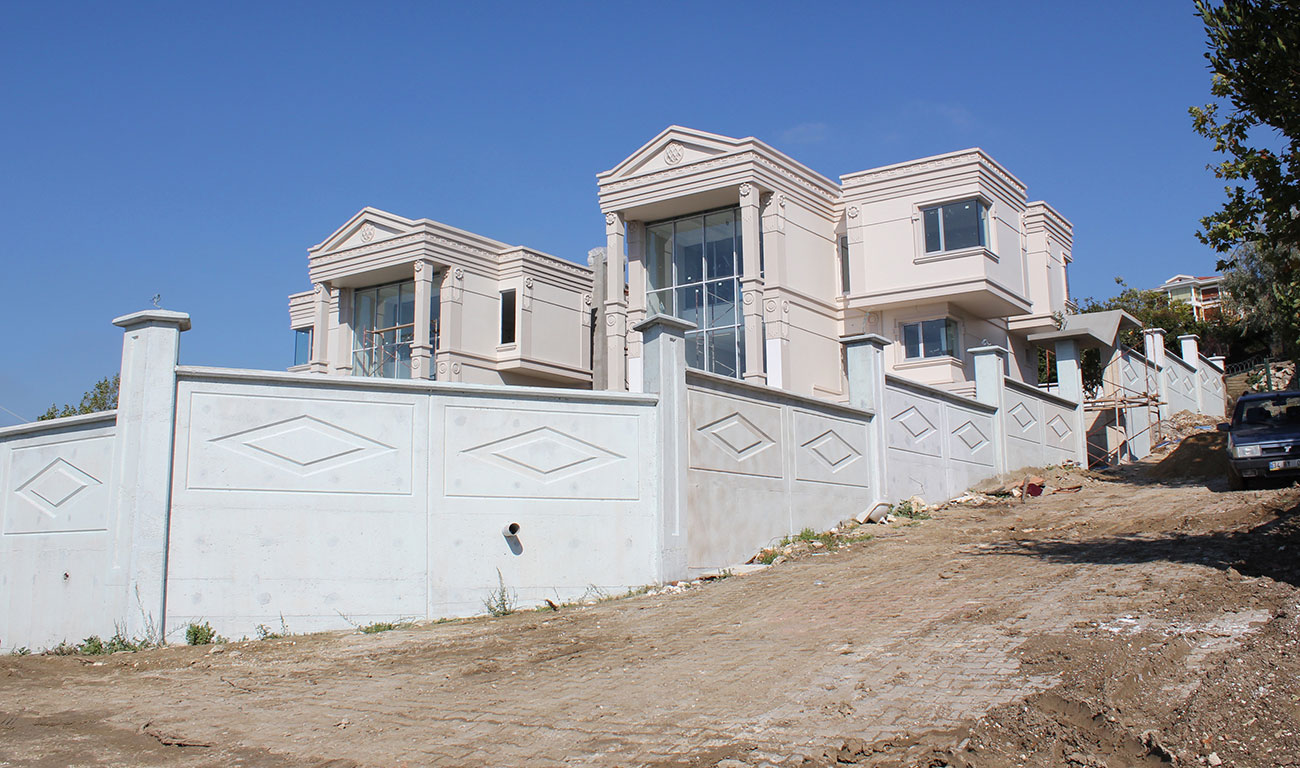 2 ayrı parselde 2 ayrı villa; her 2 villanın da kendine ait bir Otopark’ı ve Havuz’u bulunacak şekilde, simetrik tarzda tasarlanmıştır. Bodrum katta Oturma Odası, Çamaşır Odası, Depo konumlanırken; Zemin katta Salon ve Mutfak, 1. katta ise 3 adet Yatak Odası konumlanmıştır. Yapı tasarımında, iç mekanda Yatak Odası’nın da baktığı bir galeri boşluğu ile salona hacim kazandırılmıştır. Dış cephede prekast yapı elemanları tercih edilmiştir.