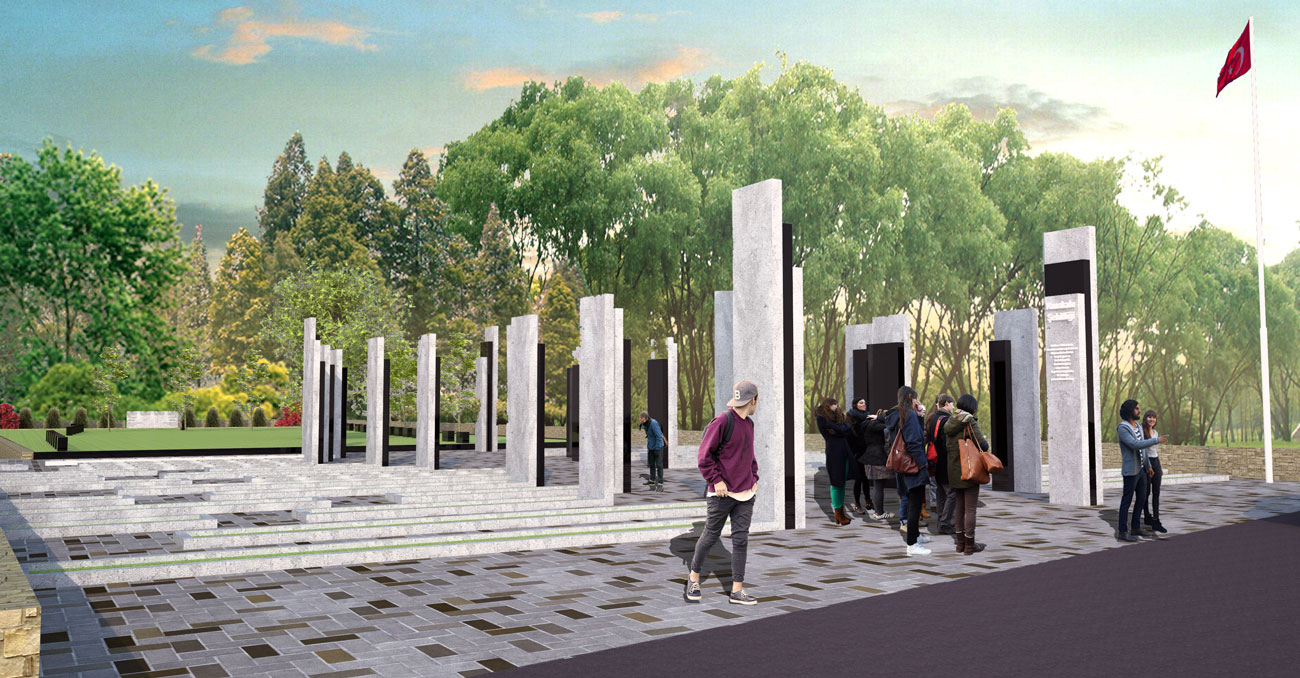 26 mezarın tarama sonucu tespit edildiği şehitlik projesinin ilk bölümünde; farkındalık ve yüzleşme yaklaşımıyla her açıdan görünür özelliğe ve ziyaretçilerin silüetini yansıtacak yüzeylere sahip yüksek kaideler kurgulanmıştır. Savaşın gerçeklerinin somut örneklerinden biri olan siper hatları, projenin şehit mezarları etrafındaki dolaşım yolunu oluşturmuştur. Bu hat ile, kullanıcıların siperde olma duygusu ile şehitliği ziyaret etmeleri amaçlanırken; savaşa ait eski top ve diğer savaş malzemeleri de yine bu güzergahta yerini almıştır.