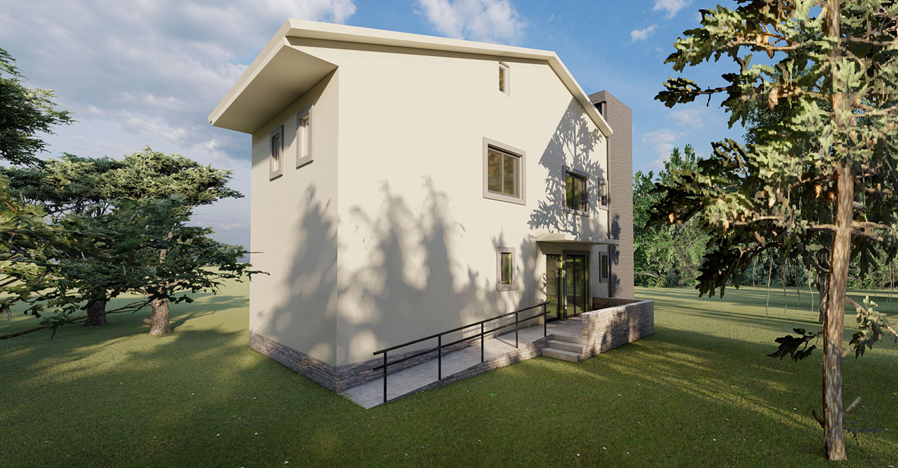 Çatı katı arası ve 2 kat şeklinde tasarlanan bina, kullanıcılarından birinin engelli olması sebebiyle engelli hassasiyeti göz önünde bulundurularak tasarlanmıştır. Dış mekandan iç mekana ulaşım ve iç mekan sirkülasyonlarında, engelli dostu çözümlemelere yönelim gösterilmiştir. Giriş katta Salon, Mutfak ve Yatak Odası konumlanırken diğer yatak odaları üst katta yer almıştır. Yapı, çatı terası ve kat terasına sahiptir.