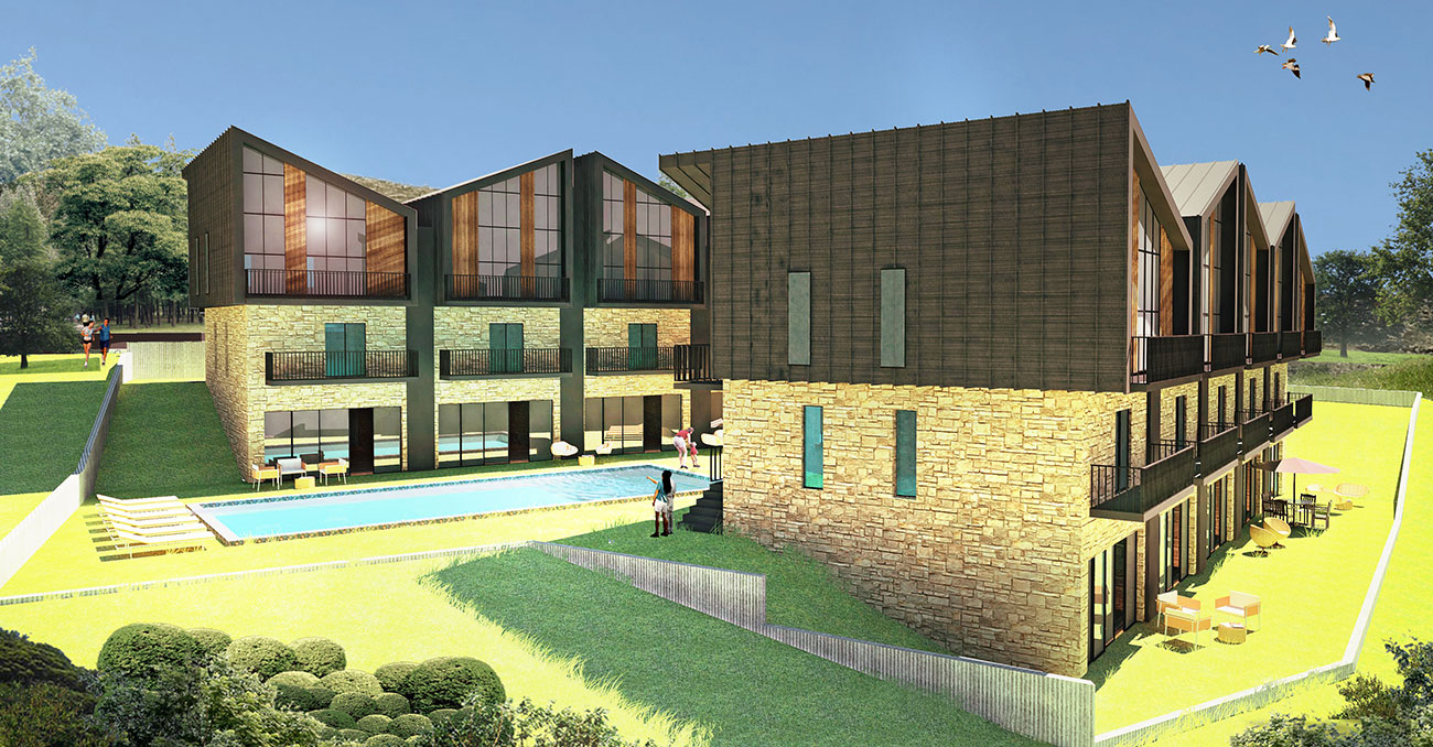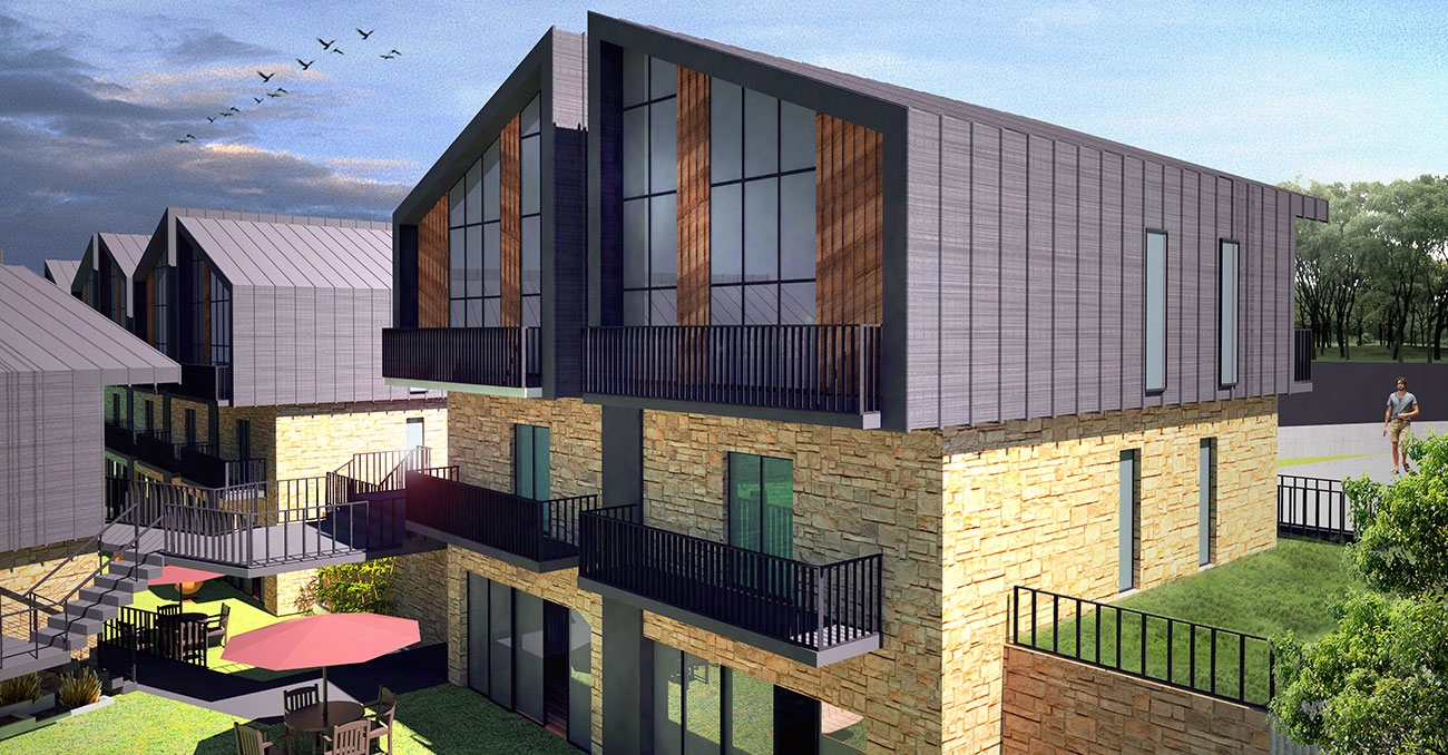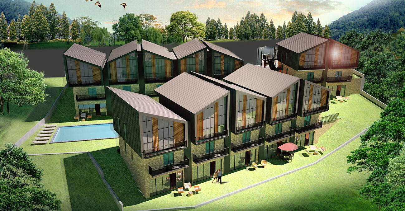 Her biri bodrum kat ile birlikte 3 kattan oluşan 3 bloklu projede; 1+1 mantığında loft daireler tasarlanmıştır. Her blok ve dairenin mevcut ada manzarasından maksimum fayda sağlaması amacıyla, kot farkları avantaja çevrilmiş, bloklar birbirini kesmeyecek şekilde konumlandırılmıştır. Farklı yönlerdeki çatı hareketleri ile monoton görünümden uzaklaştırılan yapılarda; kenet çatı sistemi, taş ve ahşap cephe kaplaması kullanılmıştır. Dış mekanda Havuz ve Otopark’ın da konumlandırıldığı proje, peyzaj alanlarıyla desteklenmiştir.