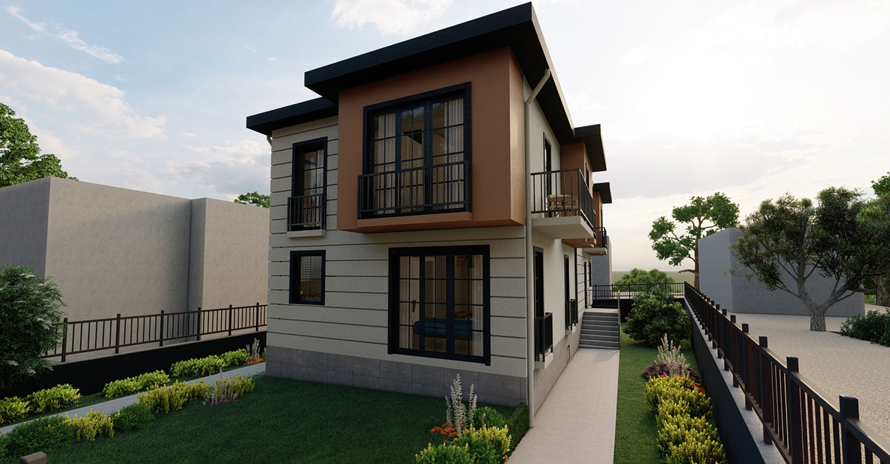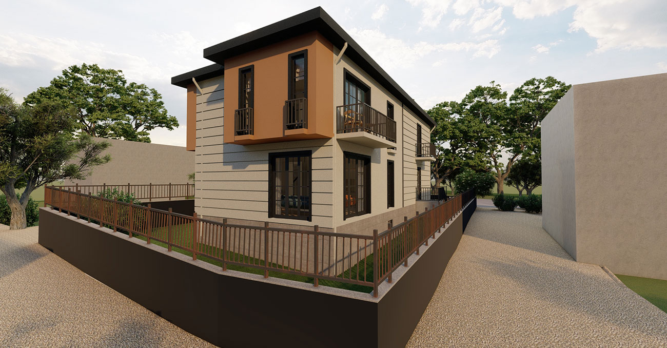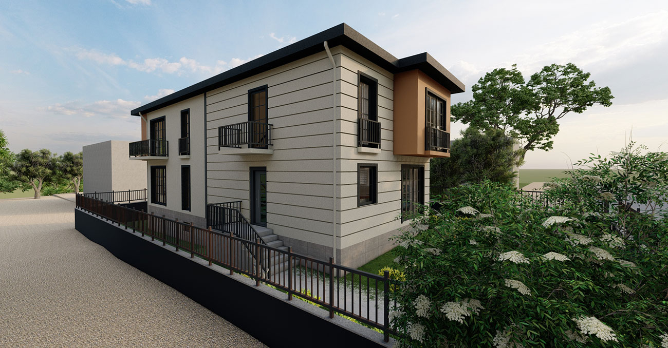4+1 ve ikiz villa mantığında tasarlanan yapı, 3 katlıdır. Zemin katta Salon, Mutfak ve Misafir Odası yer alırken; üst katta 3 adet Yatak odası yer almaktadır. Girişlerin farklı cephelerden sağlandığı yapıda, cephe, cumba etkisi ve renk hareketleriyle desteklenmiştir.