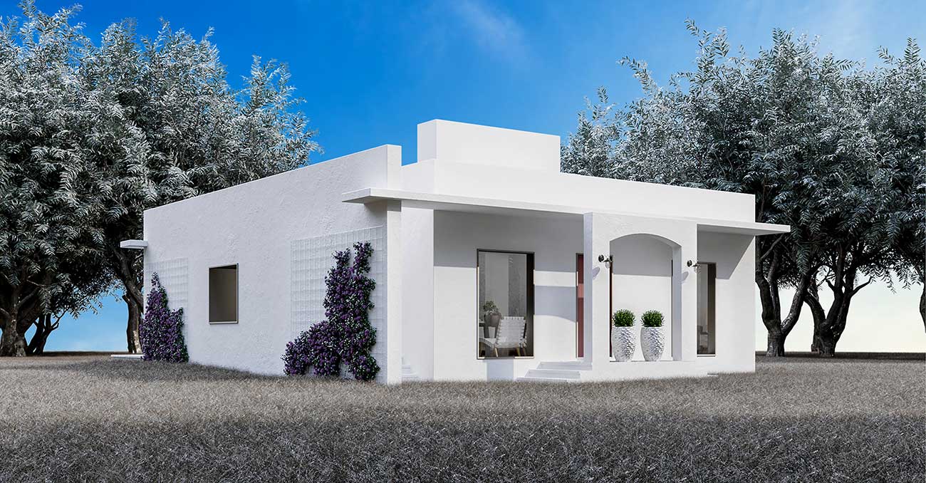 Tek katlı yapı; 3+1 olarak tasarlanmış ve köy dokusuyla uyum gösterecek cephe kaplamaları tercih edilmiştir.