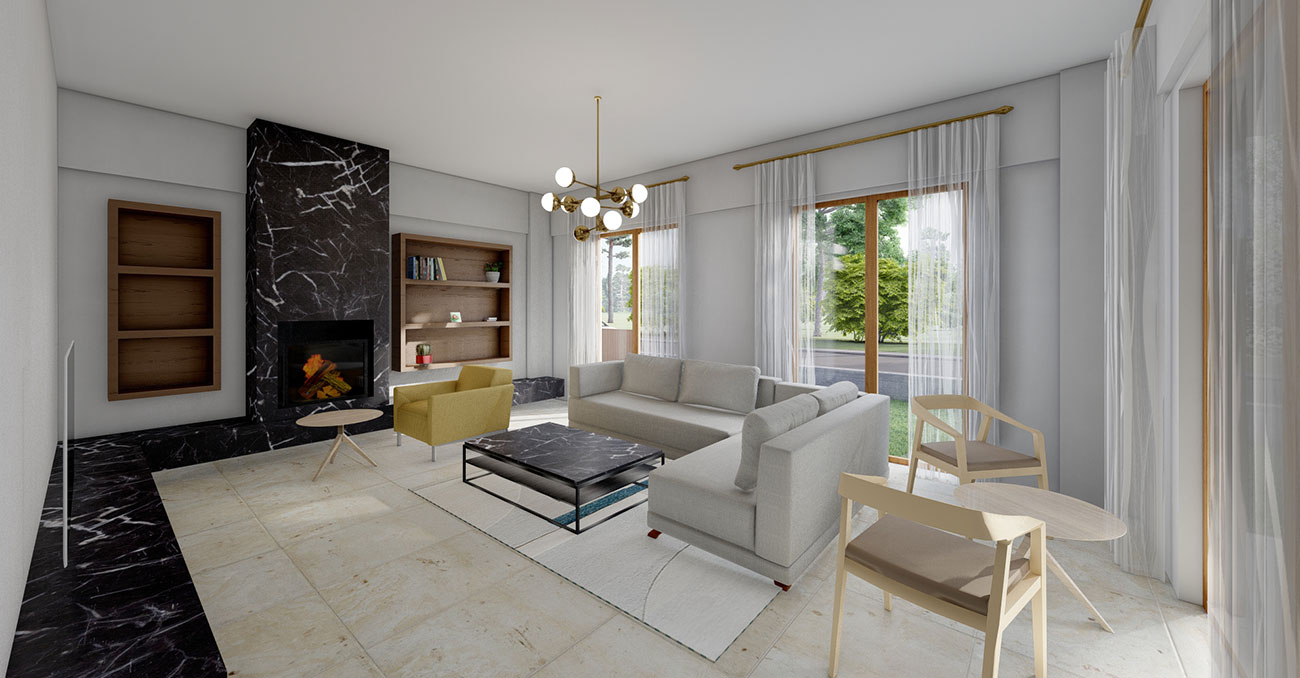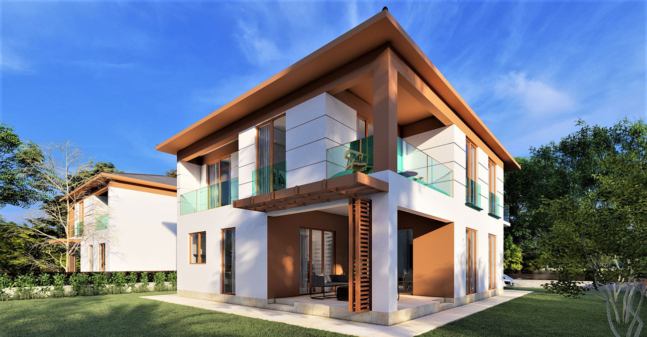 2 katlı yapı, maksimum bahçe alanı elde etmek amacıyla, yapı çekme mesafesine dayandırılmıştır. Bahçe girişinde araç otoparkının bulunduğu yapı, kısmi bodrum katına da sahiptir. Giriş katta teras, ada mutfak, salon, şömine, misafir yatak odası; üst katta ise 4 adet yatak odası bulunmaktadır. Bina cephesinde ahşap desenli kaplamalar tercih edilmiştir.
