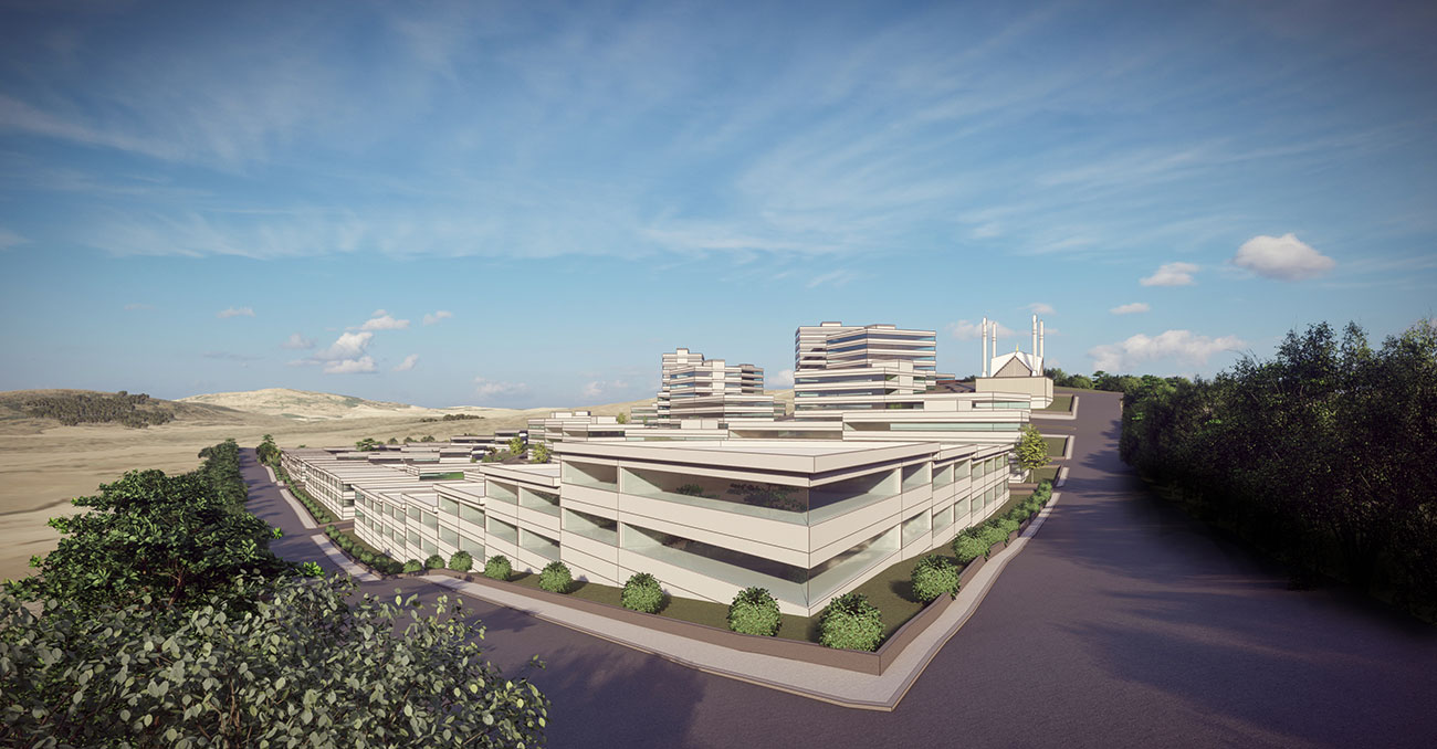 Arsa sahibinin Ezine Belediyesi olduğu proje; kenti büyütmek ve yeni bir yaşam alanı oluşturmak amacıyla tasarlanmıştır. Kot farklarının ve çok yönlü eğimlerin yer aldığı dinamik topografya, bütün olarak değerlendirilmiş ve sonrasında detaylandırılmıştır. Parsel kenarlarında tercih edilen alçak yapı tipolojisi, merkeze doğru yerini yüksek yapı tipolojisine bırakırken, alan genelinde her yapının mevcut manzaradan faydalanabilmesi amaçlanmıştır. Topografya yönünde oluşturulan ana ulaşım aksı çevresinde ticarethaneler ve konutlar konumlandırılırken, alt kotlarda ise villa tipi konutlar tercih edilmiştir. Bununla birlikte ada bünyesinde; Ticari Alan, Konut, Spor Tesisi, Cami, Belediye Hizmet Alanı, Park ve Yeşil Alan gibi fonksiyonlar da yer almaktadır.