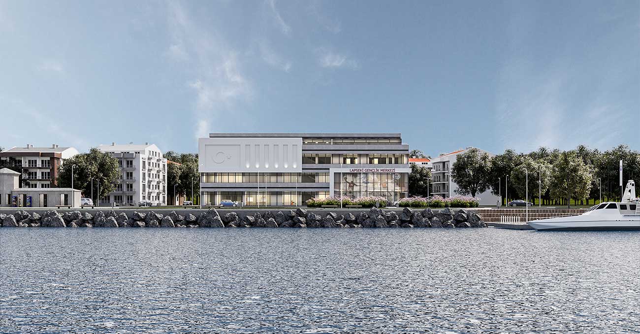 Çanakkale Boğaz köprüsü manzaralı Gençlik Merkezi, Lapseki Sahil bandında konumlanmaktadır. Dış mekanda boğaz manzarası, iç mekanda ise birimlerin birbiriyle iletişimini kuvvetlendirmek adına maksimum şeffaflık kullanılmıştır. İç mekandaki fonksiyonlar sirkülasyon mahalleriyle interaktif bir bağlantı kurmaktadır. Koridordaki insanların içerdeki atölyeleri seyredebilmesi, içerdeki kullanıcıların ise koridor alanlarını sergi alanı gibi kullanabilmesi projenin önemli özelliklerinden biridir. Ana girişte ziyaretçilerini Danışma ile karşılayan 4 katlı Gençlik Merkezi’nin bünyesinde; derslikler, Robotik Kodlama Atölyesi, Zeka Oyunları Atölyesi, Resim Atölyesi, Seramik Atölyesi, Mutfak Atölyesi, Müzik Atölyesi ve benzeri atölyeler ile Bireysel ve Grup Çalışma Alanı, 266 kişi kapasiteli Konferans Salonu, Kütüphane ve idari ofisler yer almıştır. Ayrıca iç ve dış mekanda oturum alanı sağlayan bir Kafe’ye ve Teras katında Restoran’a da sahiptir.