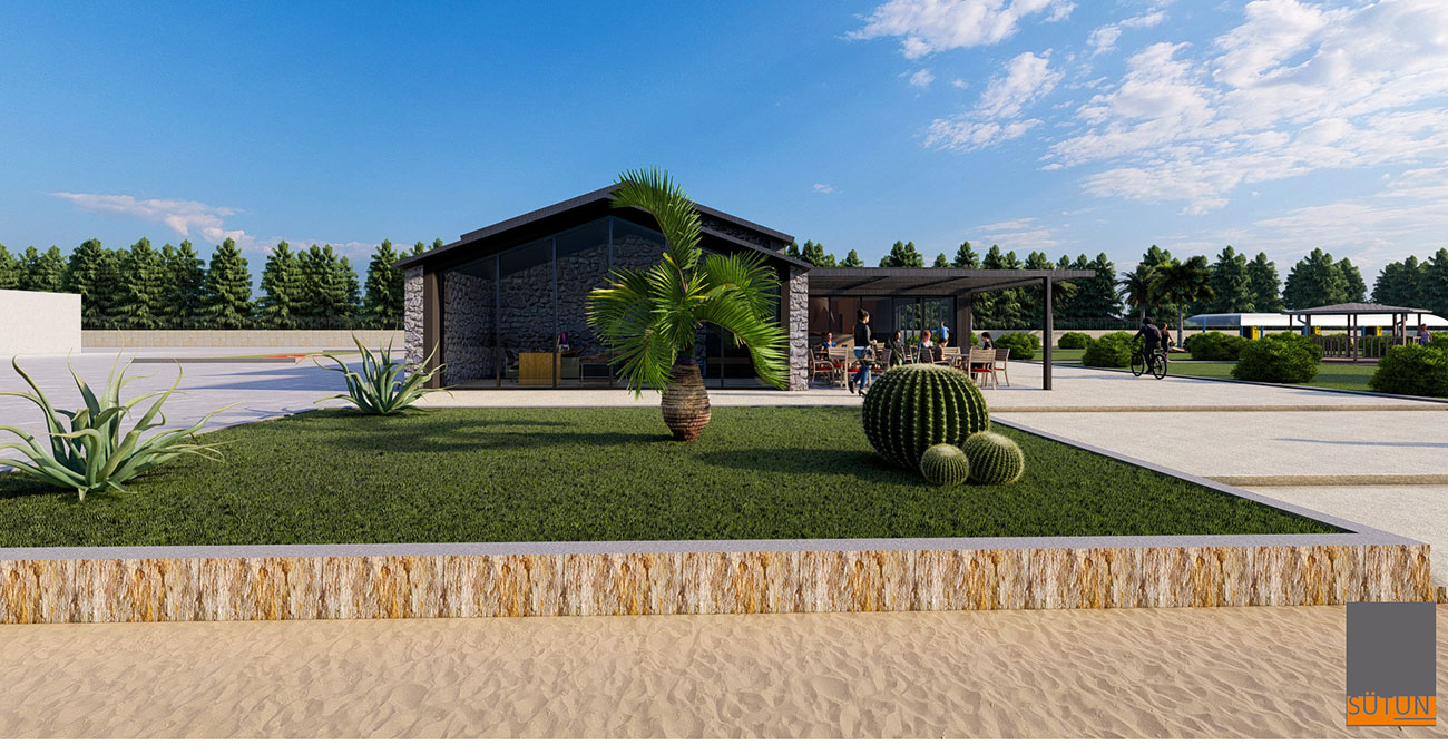Mevcut taş yapı restore edilerek bünyesinde; Toplantı Salonu, ofisler, Yemekhane ve derslik bulunan bir eğitim merkezine dönüştürülmüştür. Eğitim Merkezi’nin açık alanı ise odağında su ögesi bulunan ve birbirini kesen iki ana aks çevresinde kurgulanmıştır. Ana akslardan biri üzerinde 2 adet kameriye konumlandırılırken, sözü edilen aks taş yapı ile plaj kullanıcıları için tasarlanmış alanı birbirine bağlamaktadır.