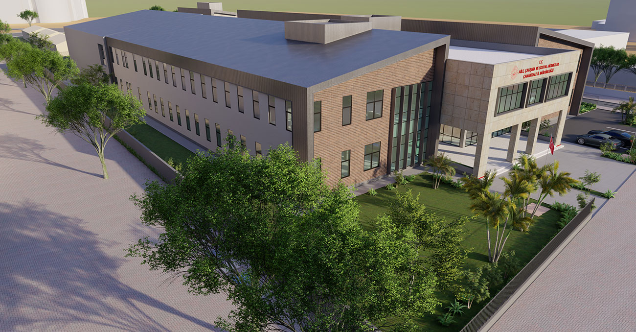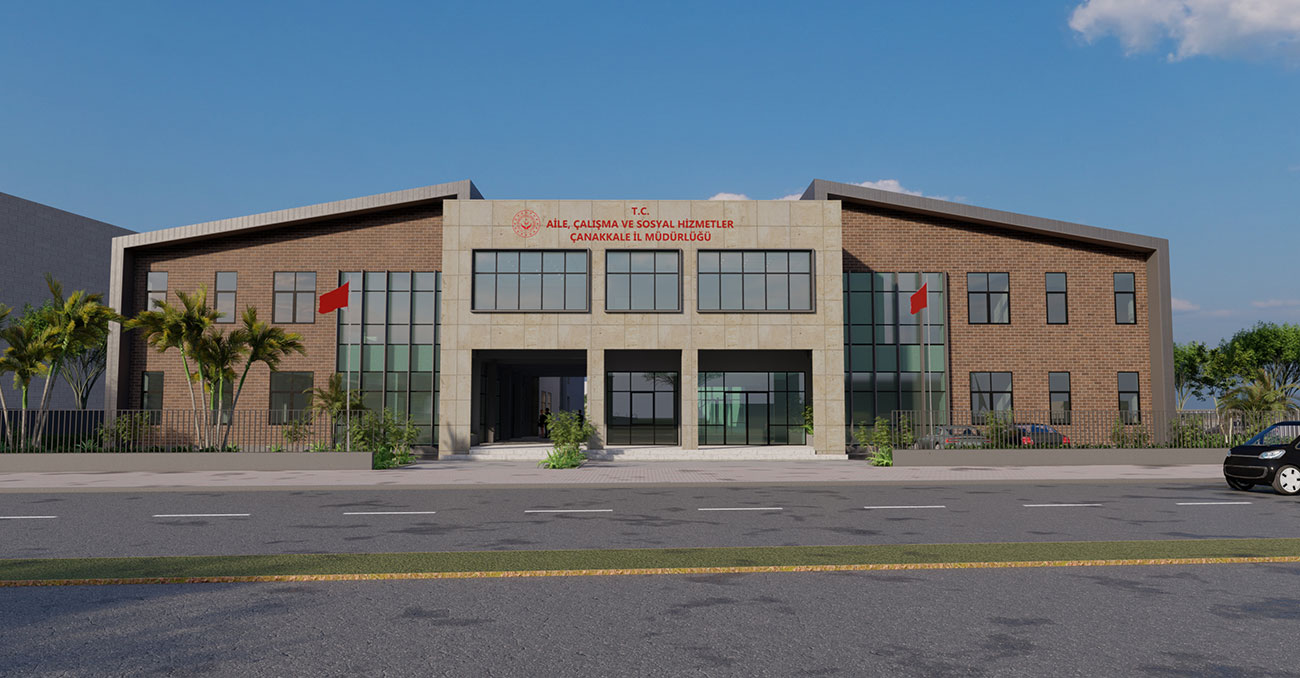 Yatay mimariden yola çıkılarak tasarımı gerçekleştirilen Aile ve Sosyal Hizmetler Çanakkale İl Müdürlüğü, koruma konsepti ile şekillendi. Sosyal Hizmetler Engelli ve Yaşlı Hizmet Servisi, Şehit ve Gazi Yakınları Hizmet Servisi, Kadına Yönelik Hizmetler Servisi, Çocuk Hizmetleri Servisi ve benzeri birçok hizmet birimini barındıran yapı; Sosyal Hizmetler Merkezi ve Aile Sosyal İl Müdürlüğü olmak üzere iki farklı girişle tek çatı altında tasarlandı.