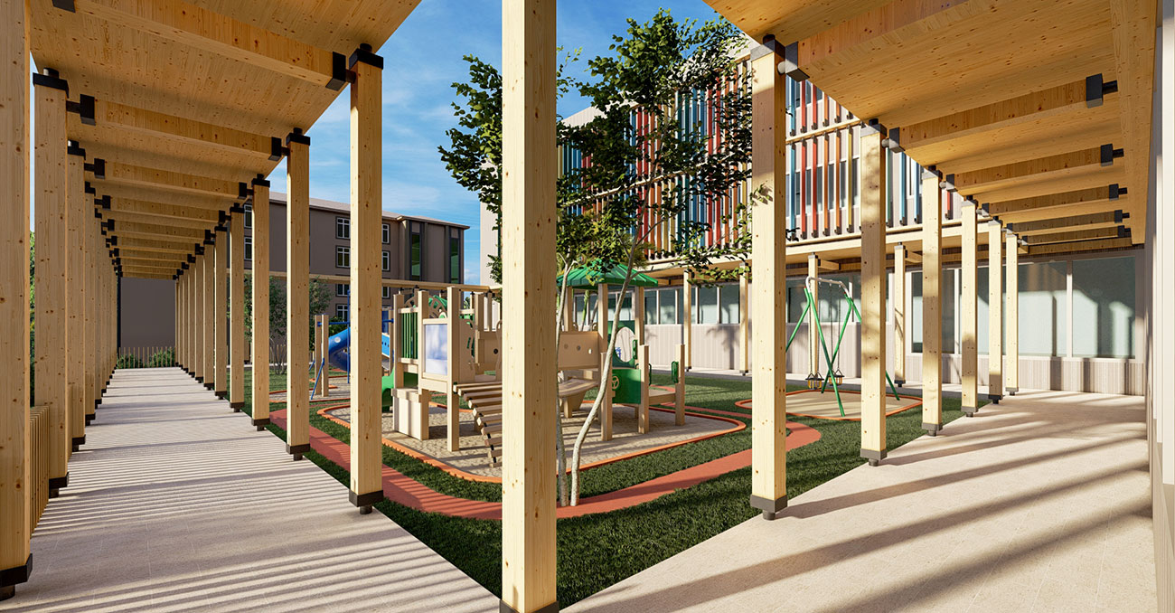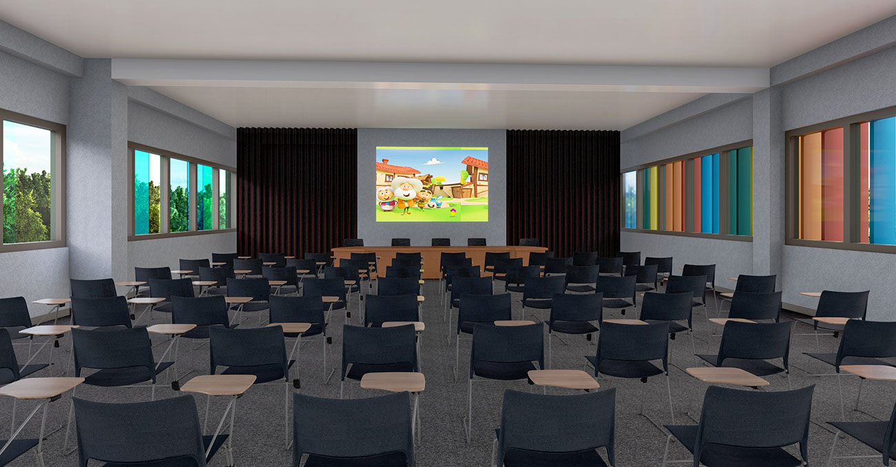 Proje, küpün boyutsal transformasyonu ile eksiltme ve arttırma yöntemleri kullanılarak tasarlanmıştır. Vaziyet planında L formdaki binayı kareye tamamlayan arkatlı yol, aynı zamanda iç bahçeyi de tanımlamıştır. Sürdürülebilir malzemeler tercih edilen cephede, renkler, yapının dinamik ve ilgi çekici konseptini desteklemektedir. Bina kapsamında Kütüphane, Yönetici Odaları, Eğitmen Odaları, Yemekhane, Çok Amaçlı Salon ve Fuaye ile derslik ve benzeri birimler bulunmaktadır. Bina çevresinde ise; kullanıcıların açık hava ihtiyacını karşılamak üzere iç bahçe tasarlanmış ve hemen yanında bir Basketbol Sahası’na yer verilmiştir.